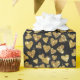 Black backgrounds with gold sparkly hearts wrapping paper, suitable for bridal showers and weddings.