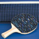 black with pattern of blue player's name ping pong paddle