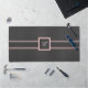 Add a little swank to your style with this simple yet classic pinstripe pattern with a deep charcoal black base and a pale pink accent stripe. Customise the monogram in the circle with your initial to create a unique desk mat for your work or play space.