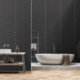 Add a little swank to your style with this simple yet classic pinstripe pattern with a deep charcoal black base and a pale pink accent stripe.