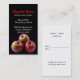 Elegant teachers business card, done in black, with a stunning photograph of three red apples, at the bottom of the card. The back of the card is designed as an appointment card. All text is customisable to say what you want. Nice business card template for teachers and tutors.