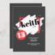 A trendy invitation with a modern red, white on black abstract design. Perfect for any age. (<a href='https://www.freepik.com/free-vector/black-friday-background-with-red-details_1368304.htm'>Designed by Freepik</a>). <br/><br/>The card is easy to customise with your wording, font, font colour, paper shape options and choice of six paper types.<br/><br/>Not exactly what you're looking for? All our products can be custom designed to meet your needs at no extra charge.<br/><br/>Simply contact us at heartfelthelper@gmail.com.<br/><br/>Coordinating products available: Just ask us!