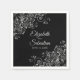 These beautiful napkins will make your wedding reception something special. They feature a simple yet elegant design with pale Grey text on a black background with a lacy silver faux foil curls and swirls in the corners. Easily personalise with your names and the wedding date.