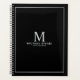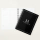 Professional planner features custom monogram, name and text in grey classic serif font style with silver border on black background.