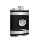 Black with Silver Stripes Borders Monogram Flask