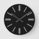 A simple wall clock with a black background, black hands and simple, modern white lines to mark the hours. Customise It to add your text or images, change background colours and more.