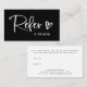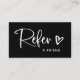 These trendy and chic black and white business referral cards feature modern, handwritten script and a cute scribbled heart for a casual, simple look on a dark background. The back has several fields that you can customize with your retail shop or company information.