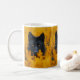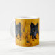 A black German Shepherd, reminiscent of a wolf dog, emerges from the sun kissed meadow, eyes aflame with secrets, wandering in the golden maize.