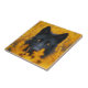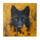 A black German Shepherd, reminiscent of a wolf dog, emerges from the sun kissed meadow, eyes aflame with secrets, wandering in the golden maize.