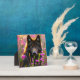 Black wolf in pink flowers plaque