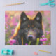 Black wolf in pink flowers tissue paper