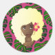 Black Woman, Blonde Afro, Tropical Leaves, Pink Classic Round Sticker