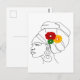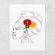 Black Woman Line Art Head Wrap Flowers Postcard