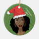 Black Woman, Red Santa Hat, Current Year, Green Ceramic Tree Decoration