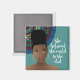 This design features a beautiful natural hair woman with a top knot, tribal inspired background, and the quote, "She believed she could, so she did".