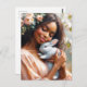 Black Woman Smiling With Cute Bunny Floral Postcard