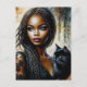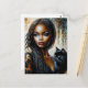 Postcard features artwork of a beautiful brown-skinned woman holding a black cat.