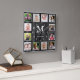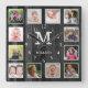 Black Wood 12 Photo Collage Family Name Monogram Square Wall Clock