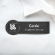 Custom Matte Black Wood Grain Name Tag with Round Logo for Employees and Staff. Personalise this modern name tag featuring a realistic black wood grain texture to create a professional look for your team. This customisable design includes space for your company logo, employee name, job title, or other custom text, making it ideal for businesses, events, or organisations. Made from durable plastic, this name tag is available with your choice of a safety pin back or a magnetic back fastener (please avoid using magnets if you have a pacemaker). With no minimum order quantity and no setup fees, this personalised name tag is perfect for creating a cohesive and stylish look for your staff or team members.