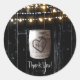Black Wood String Lights & Barrel Rustic Wedding Classic Round Sticker