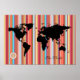 black world-map + colour-stripes poster