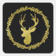 Black Wreath Gold Deer Christmas Square Sticker
