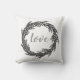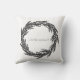 Pillow featuring black botanical design with text that can be personalised, available in other colours.