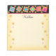 Enjoy your love of quilting with this notepad with a black quilt block header at the top and customised with your name below the header. Great gift for your quilter freinds. Quilt art is based on favourite patchwork quilt blocks such as the log cabin and star blocks plus unique blocks in vibrant and dynamic colours of orange, yellow, pink, turquoise, and lime green. The backagrouns is black that makes the colours pop for a beautiful colour palette. The writing part of this notepad is yellow with small flowers decorating the edges. Quilt art is original art from fabric and quilt designer Phyllis Dobbs. This art is available on other products and in several colour backgrounds. Quilt business products are available in Phyllis' BusinesswithFlair store. Match with coordinating stamps, envelopes, stickers and return address labels.