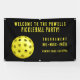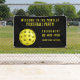 Customise this fun pickleball party welcome banner. Design features a yellow pickleball ball illustration with grunge yellow typography for the party details.