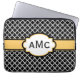 Black Yellow Quatrefoil Monogram Laptop Sleeve