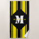 Black Yellow Racing Stripes Monogram Beach Towel