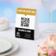 Promote your business with a practical QR code to easily access your website and get information about your business by personalizing this paper table tent sign in a clean and timeless black and yellow design with your QR code at the center. Personalize further with your business logo and contact information.