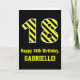 Black & Yellow Striped "18"; 18th Birthday + Name Card
