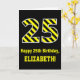 Black & Yellow Striped "25"; 25th Birthday + Name Card