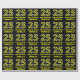 This bold, attention-grabbing, birthday-themed wrapping paper design features a large number "25", with a black and yellow striped pattern. It also features the message "Happy 25th Birthday,", and a custom name. The background is coloured black. Birthday themed wrapping paper like this might be used when giving a gift or present in celebration of somebody’s twenty fifth birthday. [~Z0000381]