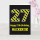 Black & Yellow Striped "27"; 27th Birthday + Name Card