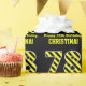 This bold, fun, birthday-themed wrapping paper design features a large number "78", with a yellow and black striped pattern. It also features the message "Happy 78th Birthday,", and a custom name. The background is coloured black. Fun wrapping paper like this might be used when wrapping presents being given to somebody in celebration of their seventy eighth birthday. [~Z0000381]