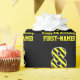 Black & Yellow Striped "8"; 8th Birthday + Name Wrapping Paper
