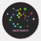 This sticker features the Sagittarius (Nov 22 - Dec 21) constellation in rainbow watercolors on a black background. Perfect for personalising gifts, stationary, and more!