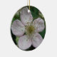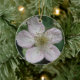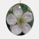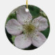 This pretty pendant style ornament features a photograph of a white blackberry flower. The photo was taken using macro photography for a detailed result. You can see the fine detail like the pink tinge on the white petals.