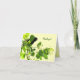 This thank you card features a red-winged blackbird on a branch way up in an aspen tree. He is peeking out from behind the golden green leaves. The sky has a very pale yellow tinge. More blackbirds are inside. The text can be customised to suit your special needs.