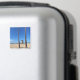 View of the famous local surf spot "Blackies" from the parking lot in Newport Beach, California. The lifeguard Tower 22 in between 2 palm trees. Back in 1953, William "Blackie" Blackstock opened the dive bar, Blackies by the Sea. Since then, locals have called this beach "Blackies", and it is a popular surf spot for long boarders and beginners. Photo taken November 2022.