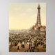 Photomechanical print of Blackpool Tower in Blackpool, Lancashire, England, which was taken towards the end of the 19th century. The photograph shows a historic view of this seaside resort taken with a view of the tower and promenade. Photograph courtesy of LOC (LC-DIG-ppmsc-08018).