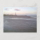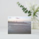 Postcard with photo of Blackpool beach, tower and north pier at dusk
