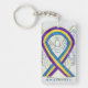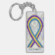 Awareness ribbon angel keychain features the art of a blue, marigold and purple awareness angel painting. The art side notes "Bladder Cancer Awareness" and the reverse side states "I Hope & Support Awareness for a Bladder Cancer Cure!" Add your own custom words for personalised angel art cause awareness custom charm key chains! You can also remove the text for an art only angel pendant key chain. The blue, marigold and purple awareness angel ribbon painting art keychains can be customised with personalised messages to make great awareness cause art key chains for fundraisers, awareness gifts, or other special events. Give this angel art keychain charm as an awareness ribbon gift for any occasion.