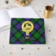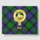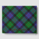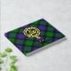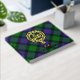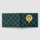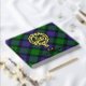 Clan Blair crest badge surrounded by a strap and buckle over tartan background. Custom front, back and spine text.
