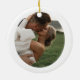This Christmas ornament features an elegant handwritten script font and modern minimalist design with a photo backside. Easily change the name and date and customise by adding your own photo for a personal touch.