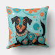This charming collection of throw pillows features adorable illustrations on both sides of two dogs from the 'Blakey Paws' squad, playful pups with expressive poses, set against a lively background of orange and aqua hues. Ideal for adding a touch of whimsy to kids' spaces, these designs combine cheerful graphics with practical items, perfect for dog lovers and anyone looking to brighten up their home decor.