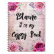 A pink toned and floral Journal with Blame it on my Gypsy Soul on the cover.