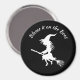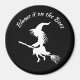 This spooky magnet is accented with a flying witch on a broomstick and the cute saying, Blame it on the Boos, making it perfect for Halloween.